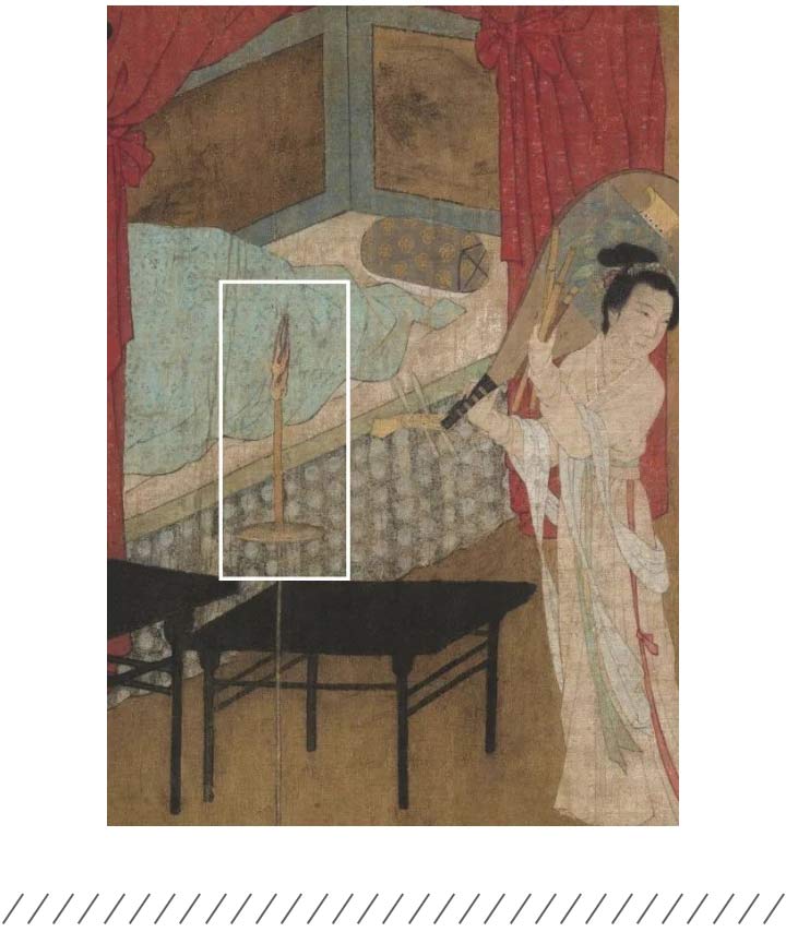《韓熙載夜宴圖》分為五段,每一段畫家采用一扇屏風(fēng)作為畫面空間建構(gòu)、營(yíng)造美感的主要手段。