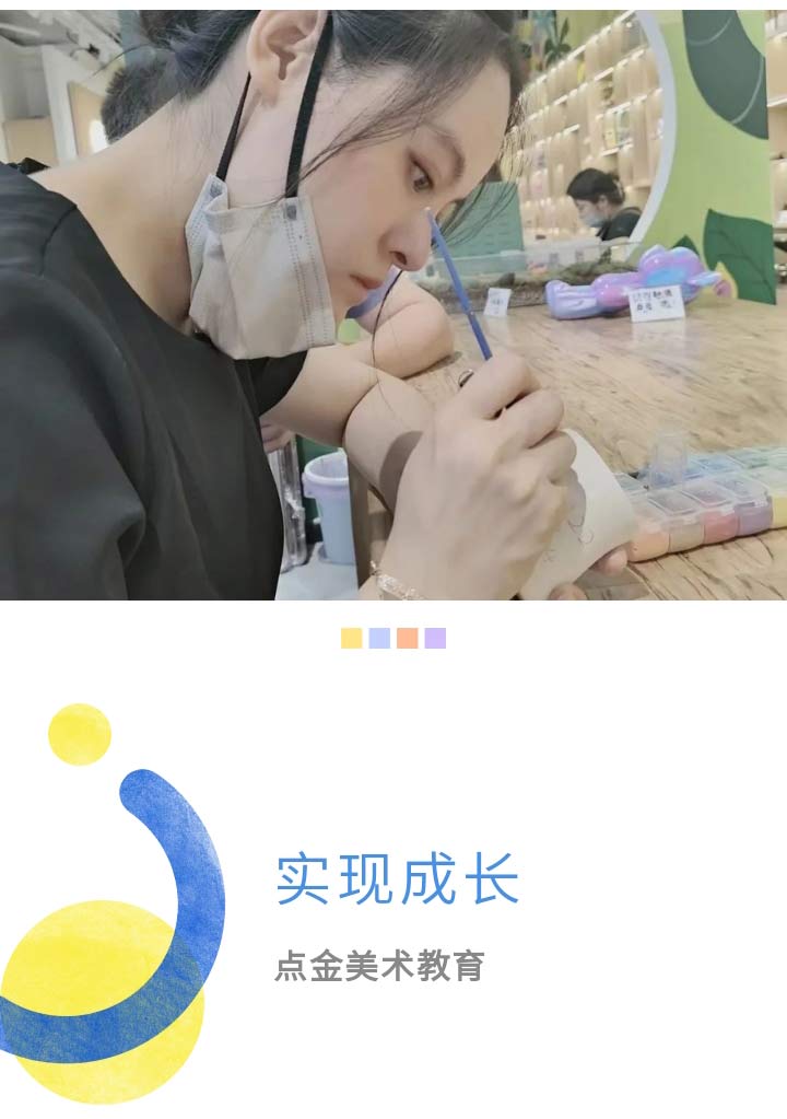 “美術(shù)老師傳遞的不僅僅是教會孩子畫一幅畫,更重要的是帶著孩子感受美,發(fā)現(xiàn)美,創(chuàng)造美,在‘教’的過程中去育人,我們要有過硬的專業(yè)能力,優(yōu)秀的教學(xué)能力,良好的反思能力和傳遞愛的能力?!睉阎@種對美術(shù)教師職責(zé)的理解,王曉彤老師在點金一干就是六年,未來也勢必會與點金一同繼續(xù)奮斗在發(fā)展美育教育的路上。
