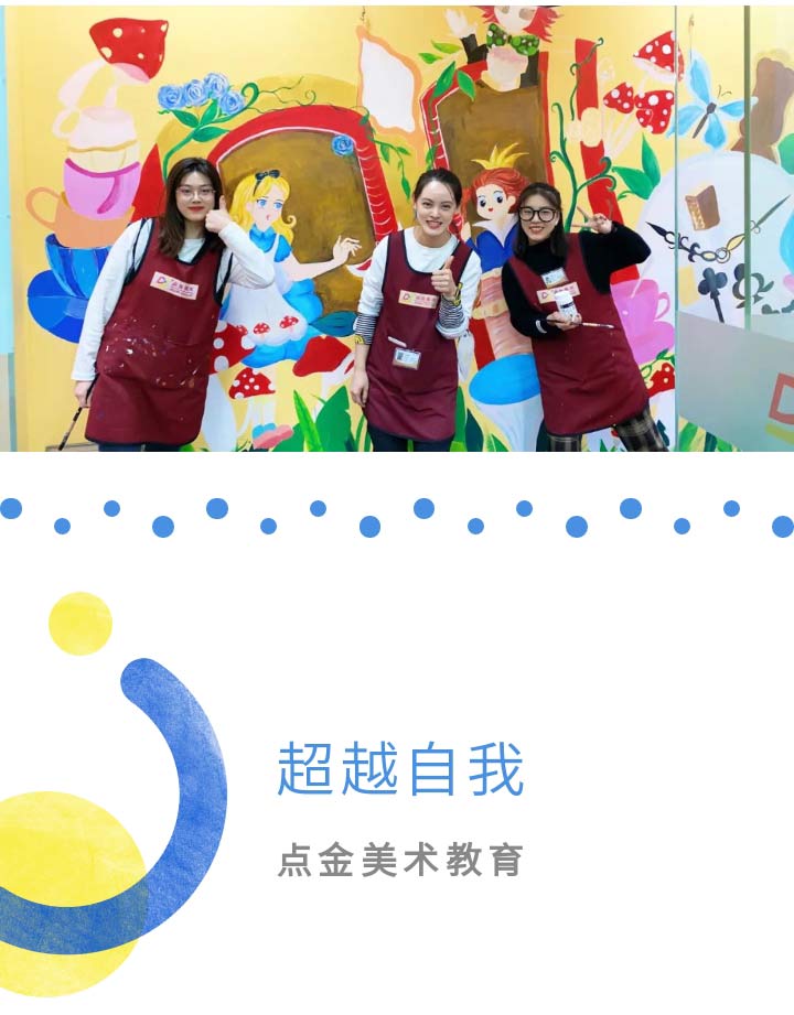 六年前,王曉彤老師與每一位剛畢業(yè)就加入點金的年輕人一樣,懷著在對未來的憧憬與十足的干勁,加入了點金美術(shù)。點金提供著廣闊的平臺和公平的晉升機會,在這里,王曉彤老師體現(xiàn)著自我價值和社會價值,也完成了個人身份的轉(zhuǎn)變。