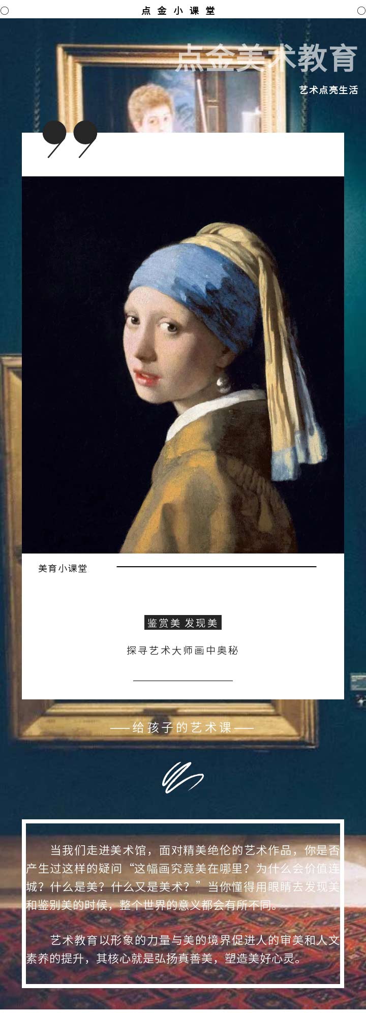 相信,經(jīng)過看完本次的點金美育小課堂,小學(xué)員們對維米爾的《戴珍珠耳環(huán)的少女》會有更深的了解。