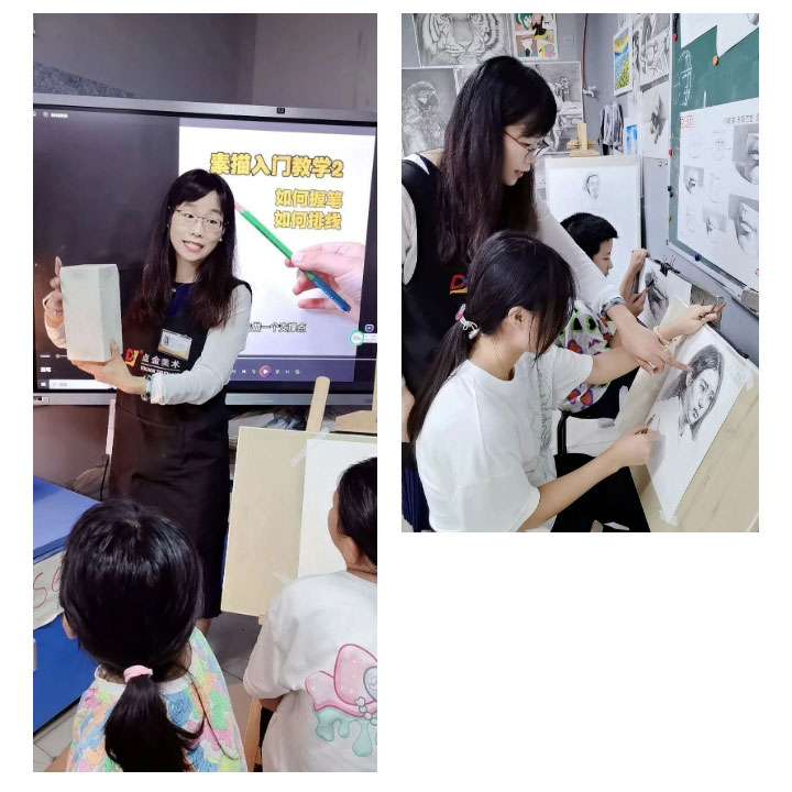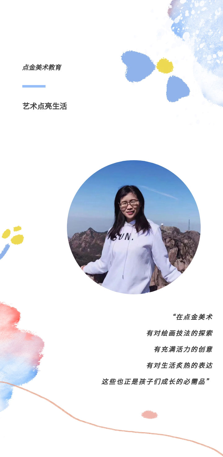 今年是秦江蘋老師加入點(diǎn)金的第六年,作為一名李滄星光大道教學(xué)基地的美術(shù)老師,她說:“看到學(xué)員們從對(duì)繪畫一無所知到逐漸掌握技巧,再到獨(dú)立創(chuàng)作出令人驚嘆的作品,這是我最大的成就和滿足?!倍鳛辄c(diǎn)金美術(shù)教研組中的一員,她說:“參與此次《第九版原創(chuàng)青少兒美術(shù)、書法教學(xué)課程體系》的研發(fā)經(jīng)歷讓我更加認(rèn)識(shí)到,只有不斷創(chuàng)新和精進(jìn),才能讓我們的課程更加適應(yīng)學(xué)員的發(fā)展需求和時(shí)代的變化。”