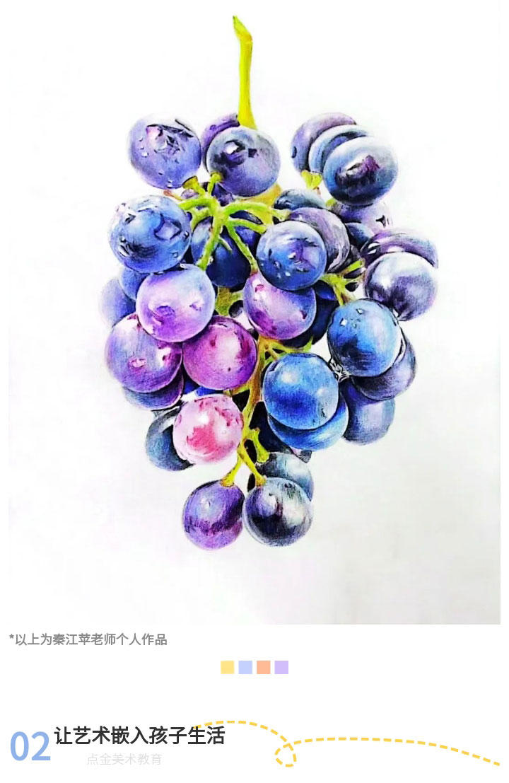 有了扎實(shí)的原創(chuàng)課程體系為根基,老師們才能更好的為學(xué)員們傳達(dá)“藝術(shù)點(diǎn)亮生活”的理念。秦江蘋老師說:“注重引導(dǎo)學(xué)生觀察生活、體驗(yàn)生活、熱愛生活。我會(huì)讓學(xué)生用畫筆記錄生活中的美好瞬間,通過藝術(shù)表達(dá)他們的情感和思想。藝術(shù)不僅僅是技能,更是一種生活態(tài)度和人生追求?!?/span>