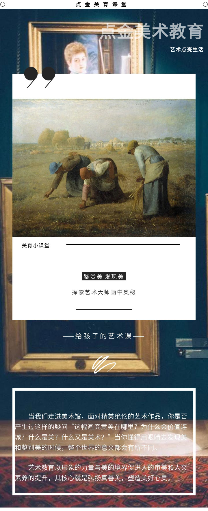 在【點金美術官方服務號】的日常更新中,加入名畫的作品介紹和欣賞的內(nèi)容,貼合校內(nèi)美育教育,以此全面發(fā)展學生的美術核心素養(yǎng)。