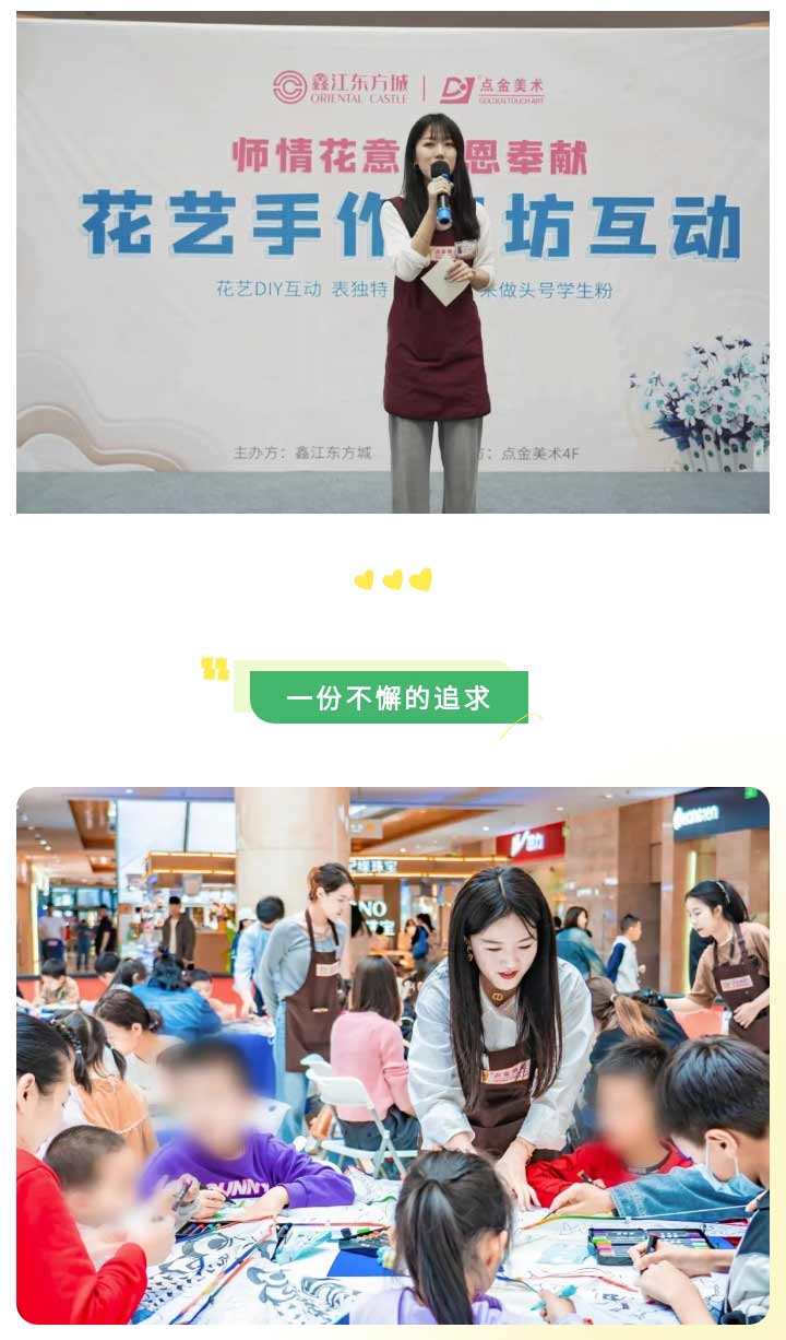 這場精彩的旅程沒有終點,數(shù)百名點金人也如王瑩瑩老師一般行走在這條康莊大道上,用藝術(shù)點亮自己生活也照亮孩子們的藝術(shù)成長之路,這是點金美術(shù)的初心使命,更是一場與熱愛著的藝術(shù)的雙向奔赴。