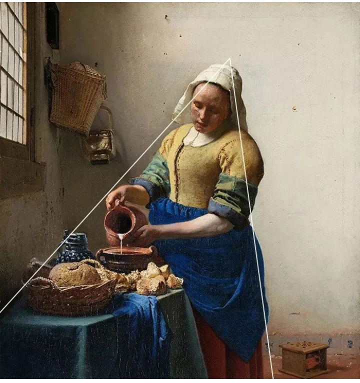 維米爾筆下的《倒牛奶的女傭人》是一幅非常恬靜的畫作,女傭?qū)⑴D虄A倒在盆里,她面色紅潤,神態(tài)安詳且專注。