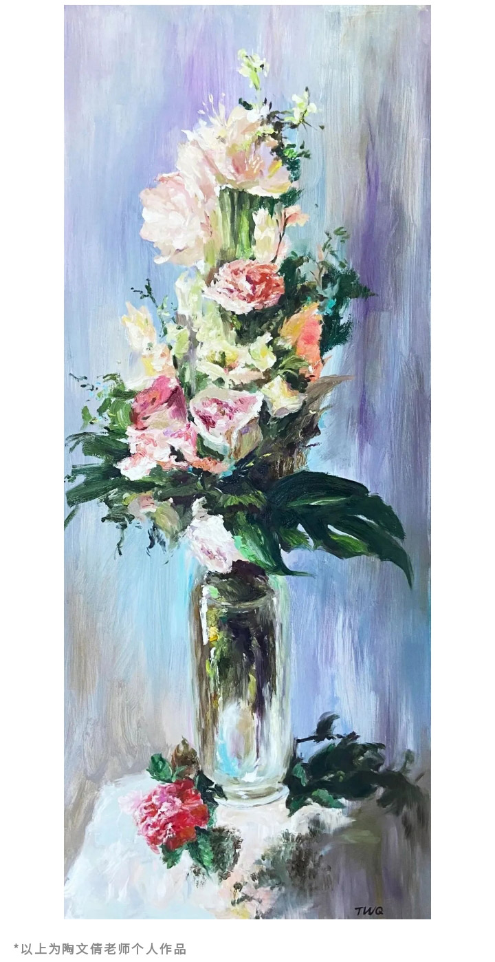 點(diǎn)金的每一位教師的藝術(shù)之旅都是從自小的繪畫學(xué)習(xí)開始的,陶文倩老師也不例外。“我從小就熱愛美術(shù),通過美術(shù)考入山東大學(xué),美術(shù)學(xué)油畫專業(yè)。在校期間獲得校獎(jiǎng)學(xué)金,校級(jí)優(yōu)秀班干部,省級(jí)優(yōu)秀畢業(yè)生,畢業(yè)作品《前行》被山東大學(xué)收藏,求學(xué)期間一直利用周末兼職教孩子們畫畫,也許就是這樣教師這個(gè)職業(yè)便在心中萌芽,如今實(shí)現(xiàn),在美育這條路上一直走著?!?/span>