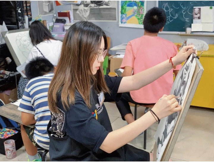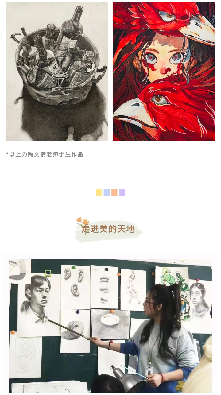 人們常說,一粒種子,只有深深地植根于沃土,才能生機(jī)無限。“對(duì)我而言,點(diǎn)金就是那片充滿生機(jī)的沃土?!秉c(diǎn)金美術(shù)李滄星光大道教學(xué)基地教研組組長陶文倩老師說道。
