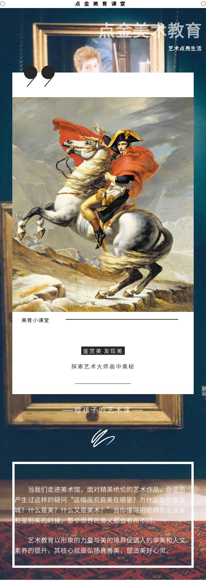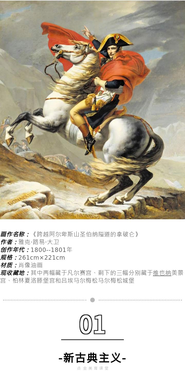 相信,經(jīng)過看完本次的點(diǎn)金美育小課堂,小學(xué)員們對(duì)雅克·路易·大衛(wèi)的《跨越阿爾卑斯山圣伯納隘道的拿破侖》會(huì)有更深的了解。
