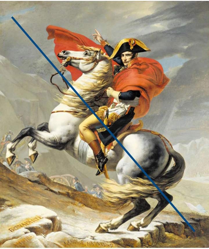 我們應(yīng)當(dāng)都看過這樣一幅畫,衣著華貴的拿破侖跨坐在前蹄高高揚(yáng)起的駿馬背上,右手遙指遠(yuǎn)方,這幅畫是很多人對(duì)于拿破侖的最早的直觀印象之一,其名為《跨越阿爾卑斯山圣伯納隘口的拿破侖》。