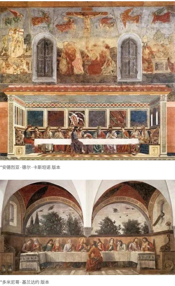 在達·芬奇之前的卡斯坦諾、基爾蘭達約等畫家都曾描繪過這個題材。他們的作品不是將猶大單獨置于餐桌邊就是把耶穌另放一旁,人物間缺乏感情的交流和戲劇性的沖突,也缺少心理的描寫。
