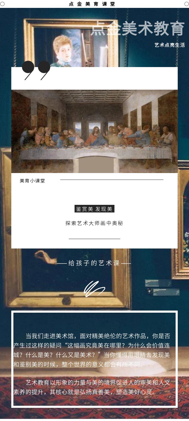 在【點金美術(shù)官方服務(wù)號】的日常更新中,加入名畫的作品介紹和欣賞的內(nèi)容,貼合校內(nèi)美育教育,以此全面發(fā)展學(xué)生的美術(shù)核心素養(yǎng)。