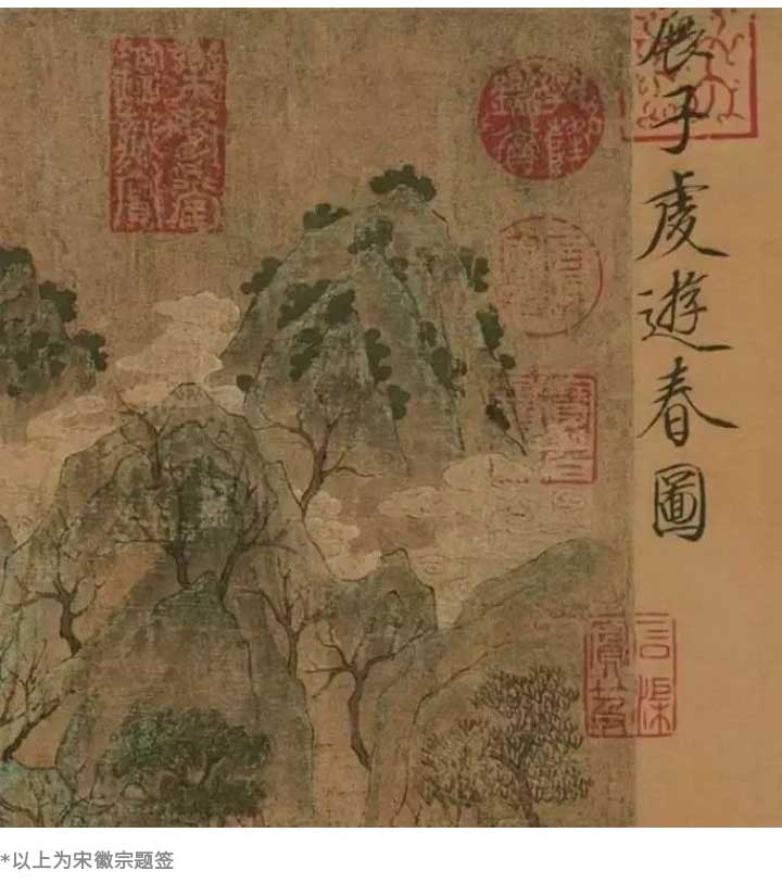 《游春圖》是畫家留存下來的唯一作品,北宋時(shí)經(jīng)宋徽宗題簽“展子虔游春圖”六字,約在宋室南遷之際散出,后歸奸臣賈似道所有。