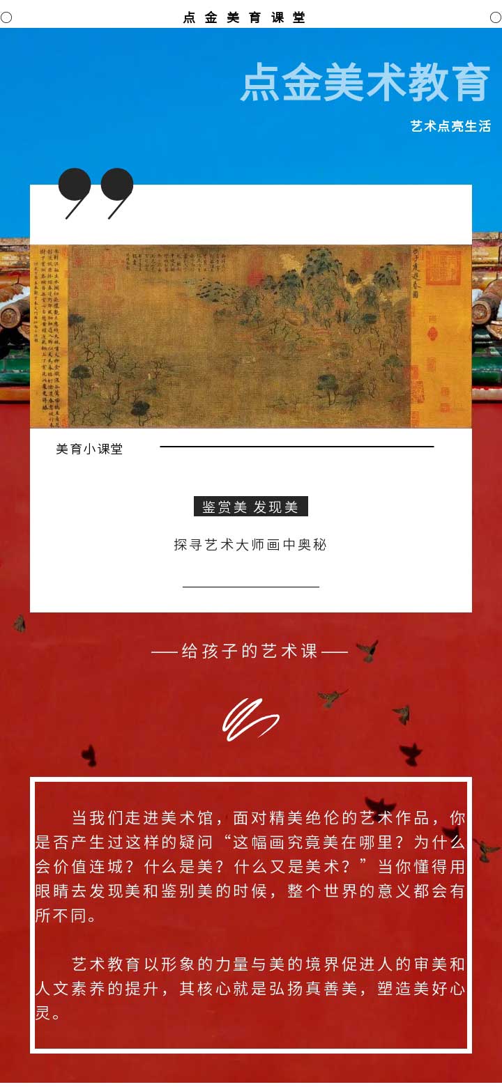 相信,看完本次的點(diǎn)金美育小課堂,小學(xué)員們對(duì)展子虔的《游春圖》會(huì)有更深的了解。