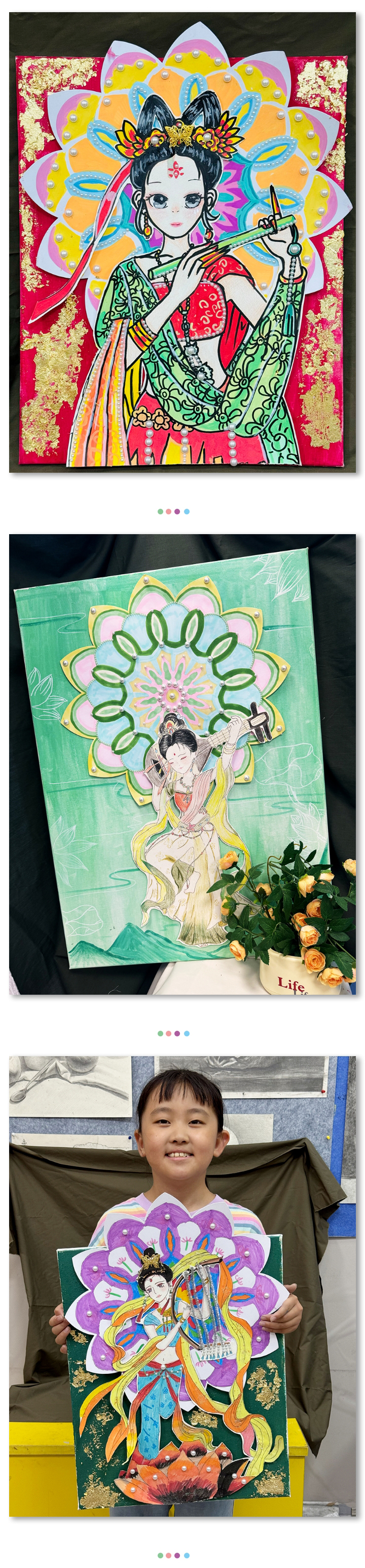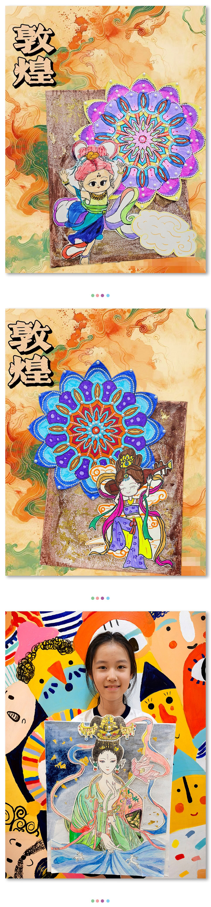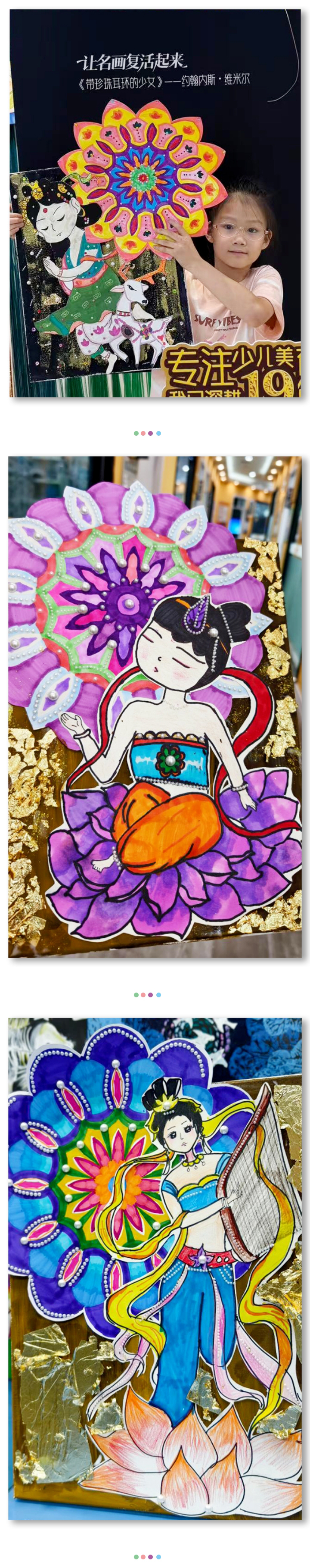 敦煌壁畫是中國古代藝術(shù)寶庫中的瑰寶,在課堂中,老師們帶孩子們領(lǐng)略敦煌壁畫中的魅力,讓敦煌藝術(shù)在孩子們的筆下傳承。