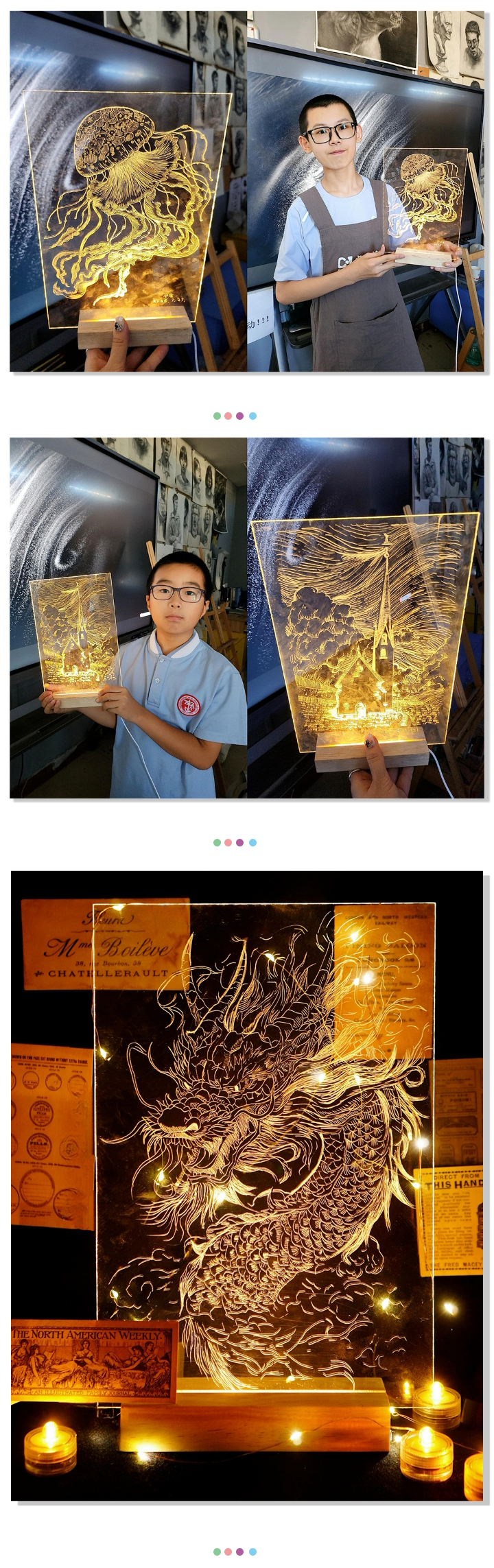 用雕刻刀精心雕刻的小夜燈,不僅鍛煉著小學(xué)員們的動(dòng)手能力,也考驗(yàn)著他們的耐心,孩子們的作品擺放在家中,是一件獨(dú)一無二的藝術(shù)品。