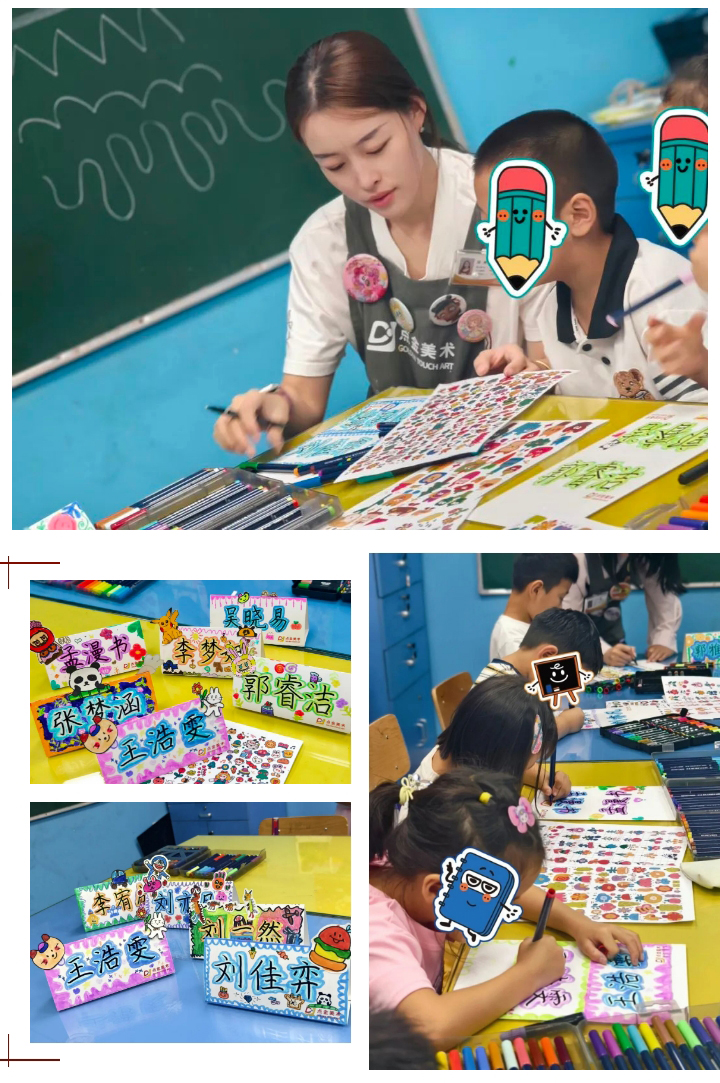 在暑假的小尾巴,點(diǎn)金美術(shù)部分校區(qū)開展了姓名牌制作活動(dòng),將書法與美術(shù)巧妙結(jié)合,同時(shí)又給即將踏入小學(xué)的孩子們儀式感。