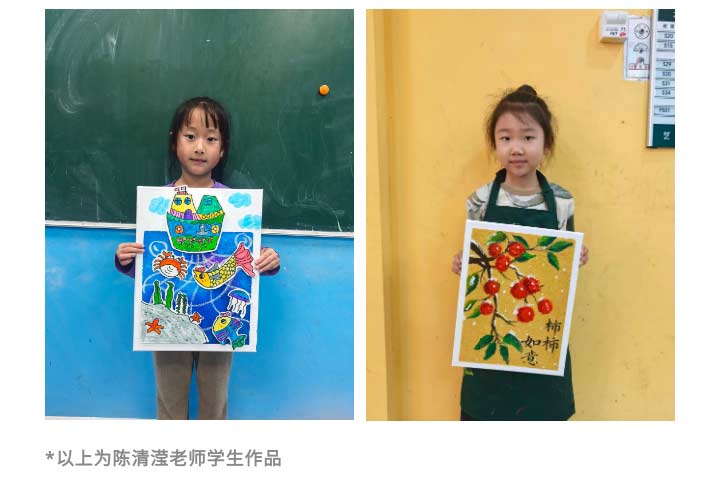 正是因?yàn)橛辛藢?duì)藝術(shù)的熱愛(ài)與不懈追求,才有了想要把自己熱愛(ài)的事物傳遞的信念。在教學(xué)的過(guò)程中,陳清瀅老師也會(huì)竭盡全力幫助孩子們通過(guò)各種方法來(lái)提升學(xué)習(xí)的興趣。
