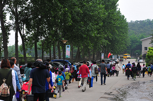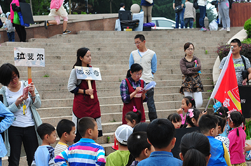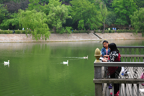漂亮師生配美景,本身就是一幅漂亮的畫