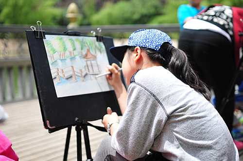 點(diǎn)金美術(shù)四方教學(xué)基地,于5月28-29日,在北嶺山公園分批、分組地進(jìn)行了繪畫寫生活動。北嶺山公園風(fēng)景秀麗,環(huán)湖而座,頓生“碧玉妝成一樹高,萬條垂下綠絲絳”之感……