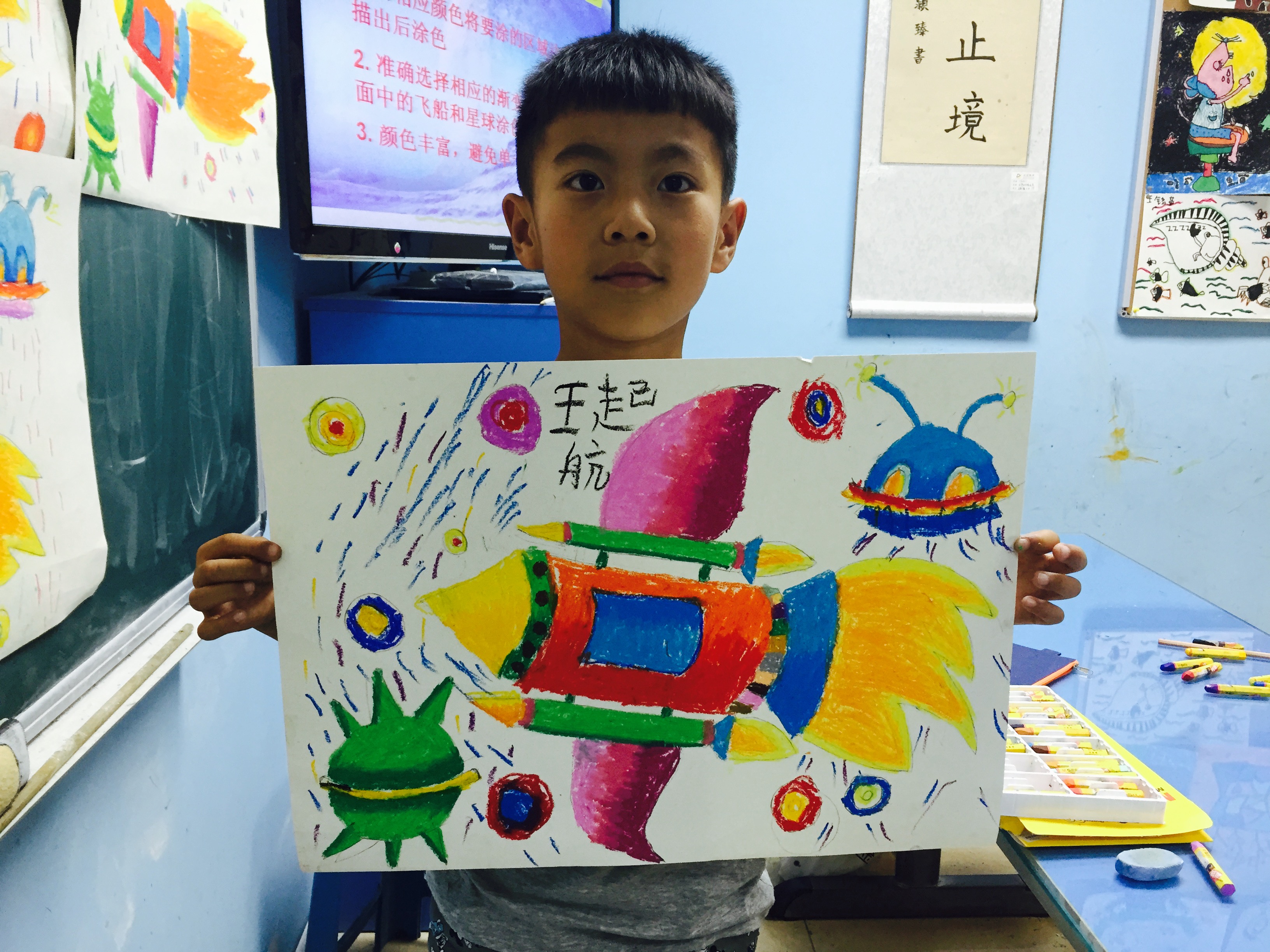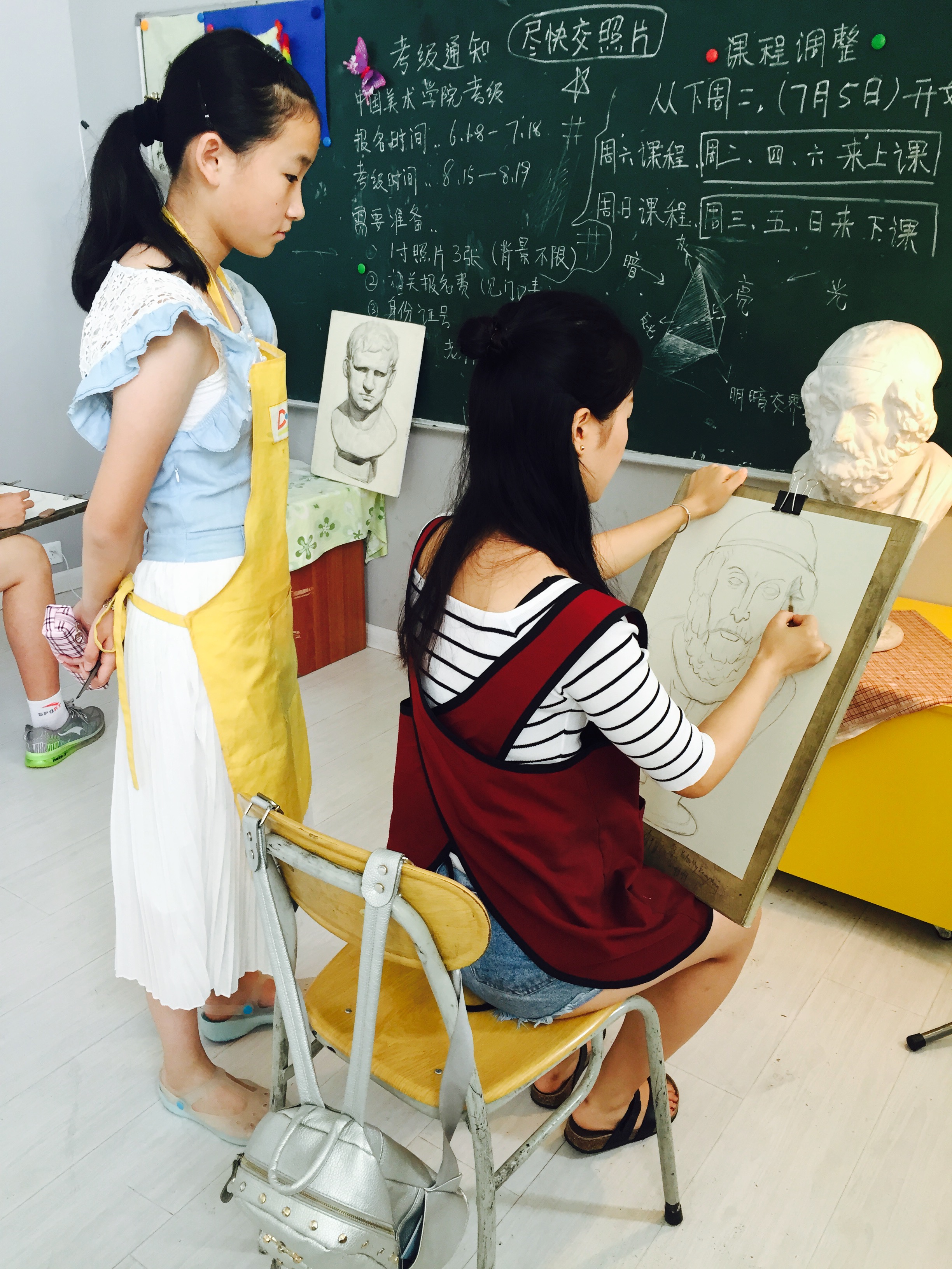 暑假期間學員們努力畫畫參加齊魯情的比賽和考級