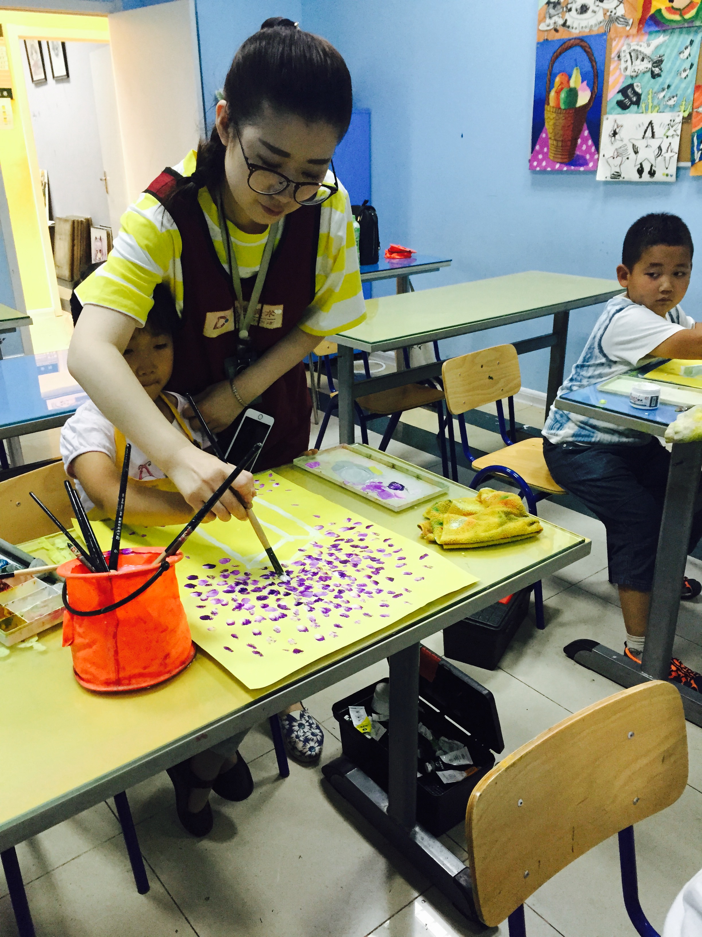 老師指導孩子畫畫