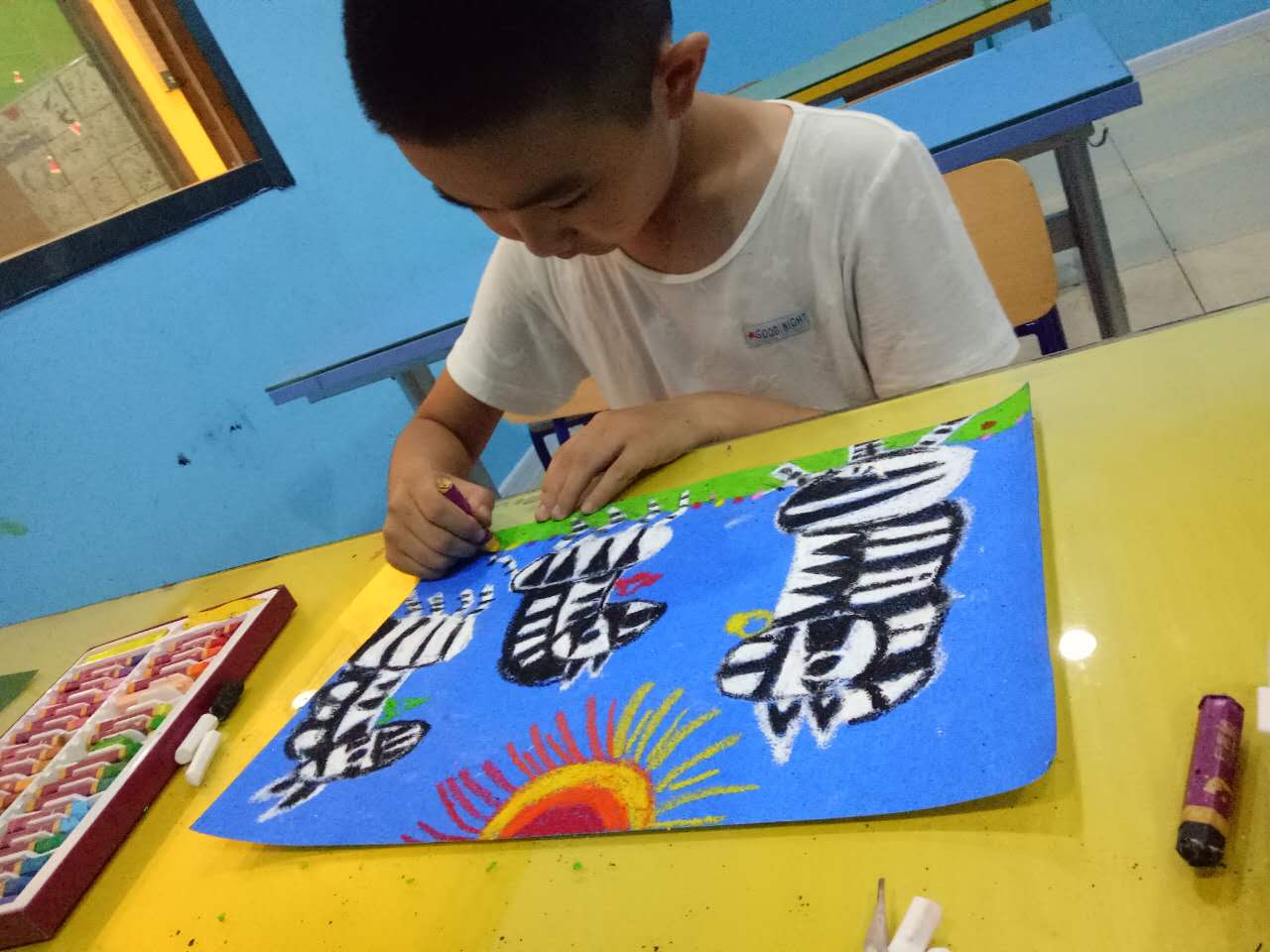 近日,點金美術即墨教學基地兒童畫4班的小學員們在任課老師的指導下,展開了油水分離法特色課程的學習,孩子們收獲滿滿。