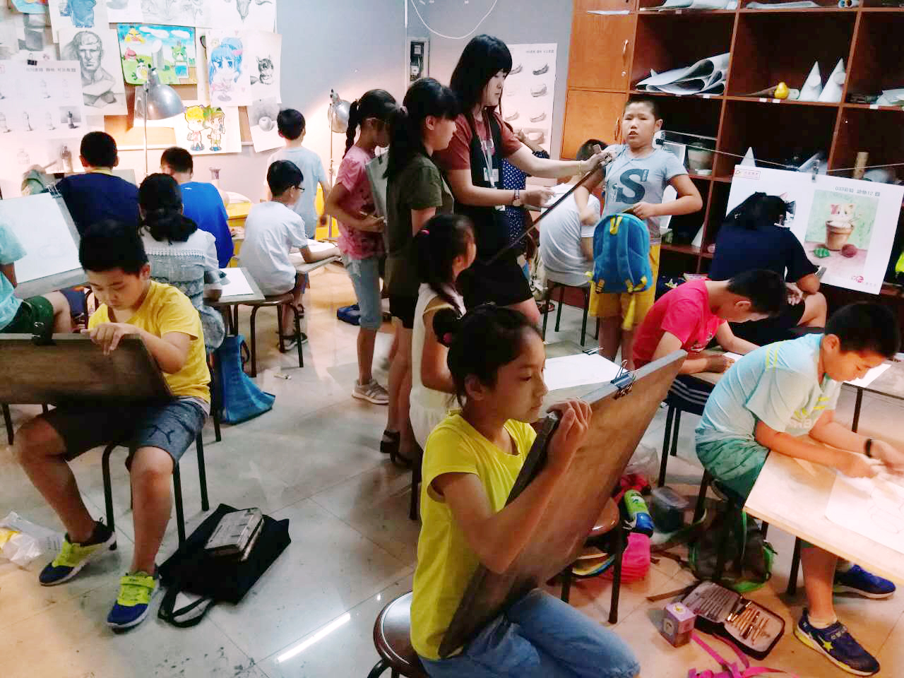 針對(duì)兒童畫(huà)班級(jí)和素描班級(jí)的考試級(jí)別的不同要求,點(diǎn)金美術(shù)的任課老師們悉心指導(dǎo),更進(jìn)一步強(qiáng)化學(xué)生的整體意識(shí)和結(jié)構(gòu)意識(shí)。對(duì)于基礎(chǔ)不同、考試級(jí)別不同的學(xué)生,任課老師從學(xué)員的角度出發(fā),有的放矢,在培養(yǎng)學(xué)員繪畫(huà)技能的同時(shí),有意識(shí)的引導(dǎo)孩子們認(rèn)識(shí)水平和藝術(shù)修養(yǎng)的提升。而孩子們也投入到緊張的備戰(zhàn)狀態(tài)中,課上學(xué)習(xí)課后練習(xí),嚴(yán)陣以待。