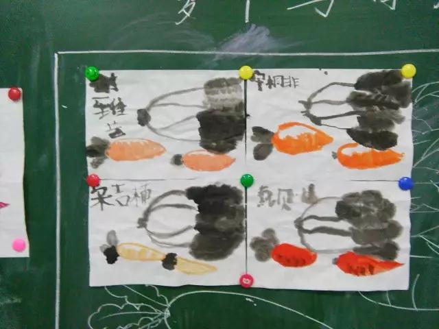 根據(jù)孩子們喜歡鮮艷、絢麗色彩的特點(diǎn),任課老師引導(dǎo)孩子們從色彩鮮艷的水果、蔬菜開始學(xué)習(xí),同時(shí),還讓學(xué)生把水墨畫傳統(tǒng)材料與水粉、丙烯畫等顏料結(jié)合在宣紙上作畫,取得強(qiáng)烈的視覺效果。色彩的大膽運(yùn)用與材料上的創(chuàng)新,極大地拓展了水墨畫的表現(xiàn)空間,豐富了水墨畫的內(nèi)涵與外延。