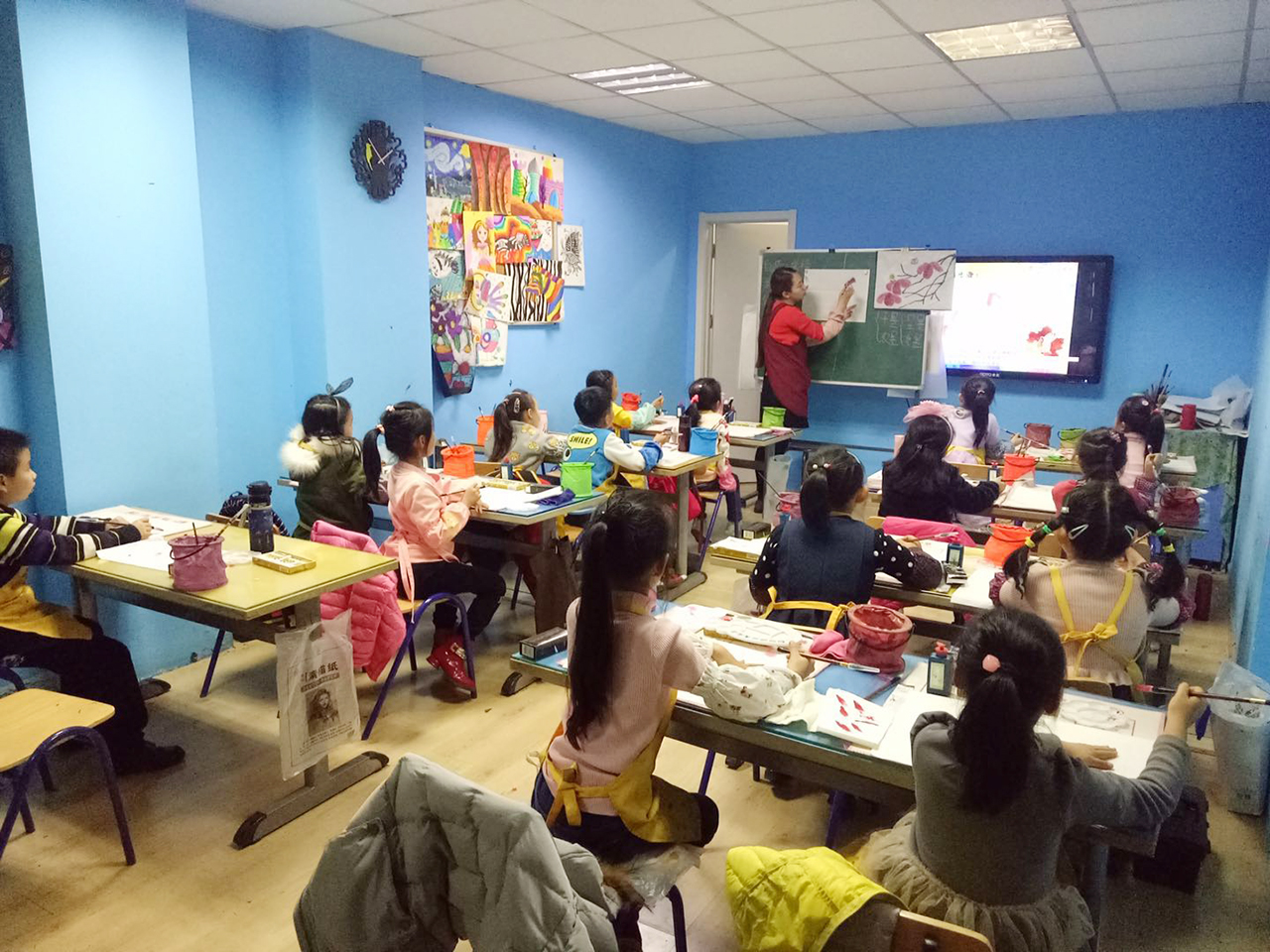 點(diǎn)金美術(shù)水墨畫課程,以少年兒童美術(shù)教育的正確理念為導(dǎo)向,結(jié)合水墨畫的藝術(shù)特點(diǎn)及少兒美術(shù)教育規(guī)律,將水墨畫傳統(tǒng)材料與水粉、丙烯畫等相結(jié)合,色彩的大膽運(yùn)用與材料的創(chuàng)新,豐富了水墨畫的內(nèi)涵與外延,達(dá)到啟蒙、摹擬、運(yùn)用、創(chuàng)作的學(xué)習(xí)目標(biāo)。讓孩子們切身體驗(yàn)和感受到它蘊(yùn)藏的文化內(nèi)涵,給孩子們提供自由、自主作畫的空間和機(jī)會(huì),進(jìn)行中國傳統(tǒng)文化的傳承,是點(diǎn)金美術(shù)始終堅(jiān)持在做的事情。