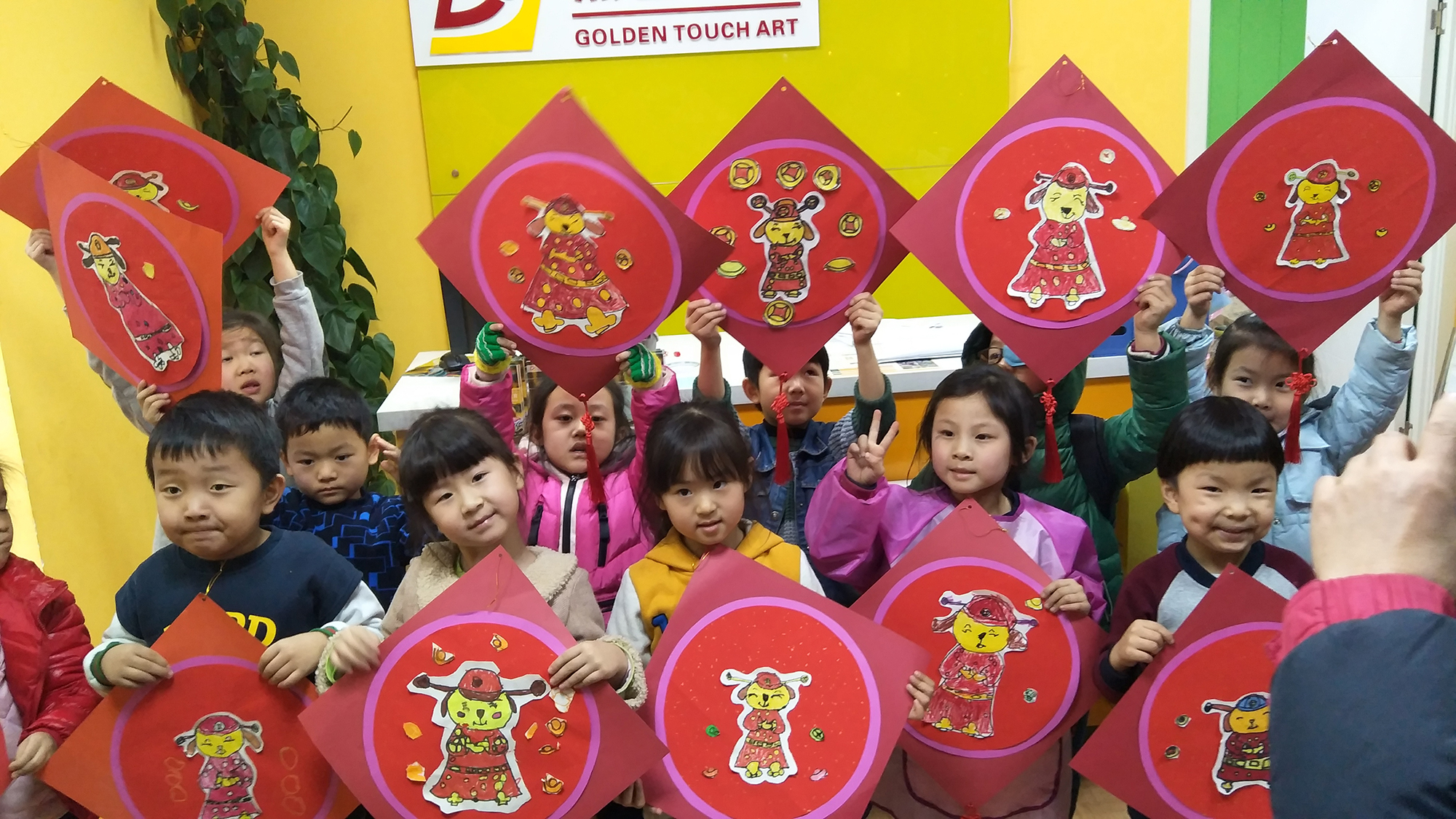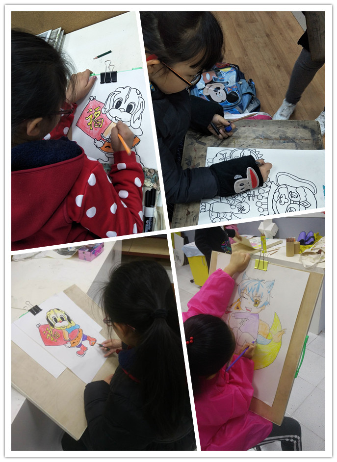 距離戊戌狗年春節(jié)還有10天,圍繞新春主題,點金美術(shù)四方校區(qū)的老師們將中國年傳統(tǒng)圖案紋樣與現(xiàn)代元素相結(jié)合,結(jié)合點金美術(shù)第五版原創(chuàng)少兒美術(shù)課程體系,設計出了豐富多樣的新年藝術(shù)主題課程。