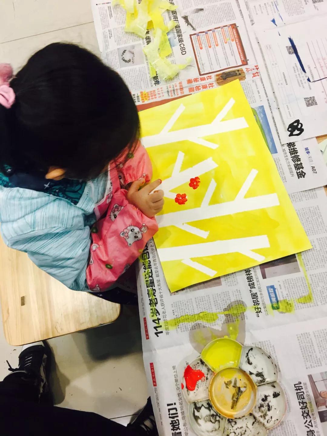 啟蒙班課堂上,孩子們?cè)谌握n老師的帶領(lǐng)下,用水粉筆畫出背景顏色、繪制綠葉,將自己的小手變成畫筆,裝點(diǎn)上欣欣向榮的花朵。小樹(shù)舒展著黃綠嫩葉的枝條,在微微的春風(fēng)中拂動(dòng),就像一群群身著綠裝的孩童在翩翩起舞。