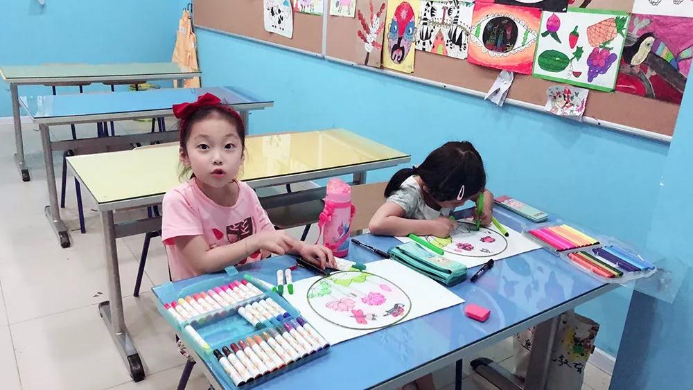 點金美術(shù)即墨校區(qū)的課堂上,任課老師通俗易懂的介紹了團扇的悠悠歷史、扇面繪畫的結(jié)構(gòu)設(shè)計、色彩搭配等,詳細講解了繪畫和上色的思路,讓孩子們在享受身邊清涼的同時,感受繪制團扇的“藝術(shù)美”。