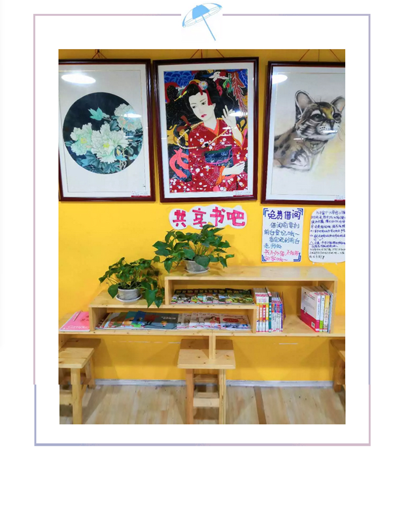 值得一提的是,“書吧”投入使用的第一天就有學(xué)員主動(dòng)將自己家里看過的圖書拿到校區(qū)與其他學(xué)員分享,同時(shí)也有不少家長和學(xué)員表示家里有很多自己看過的閑置圖書愿意放到校區(qū)與其他學(xué)員共享,相信我們的“共享書吧”就像一只小小鳥,羽翼會(huì)漸漸豐滿起來,實(shí)現(xiàn)真正的“共享”。 在這個(gè)提倡全民閱讀的大環(huán)境下,中聯(lián)校區(qū)也希望盡自己的力量為學(xué)員,為家長提供更多閱讀的機(jī)會(huì),為學(xué)員們來點(diǎn)金美術(shù)中聯(lián)校區(qū)學(xué)習(xí)美術(shù)賦予更深遠(yuǎn)的意義。