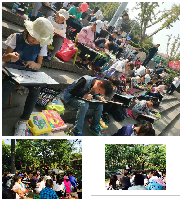 6日、7日的李村公園,熱鬧非常,涼亭拐角、小路盡頭,聚集著一隊(duì)又一隊(duì)點(diǎn)金小畫家,他們不斷觀察、認(rèn)識(shí)變化萬千的自然規(guī)律,興高采烈的執(zhí)著畫筆,將自己眼中的秋意勾勒,每幅作品仿佛都在“訴說”著不一樣的韻味,孩子們身處自然,樂在其中。