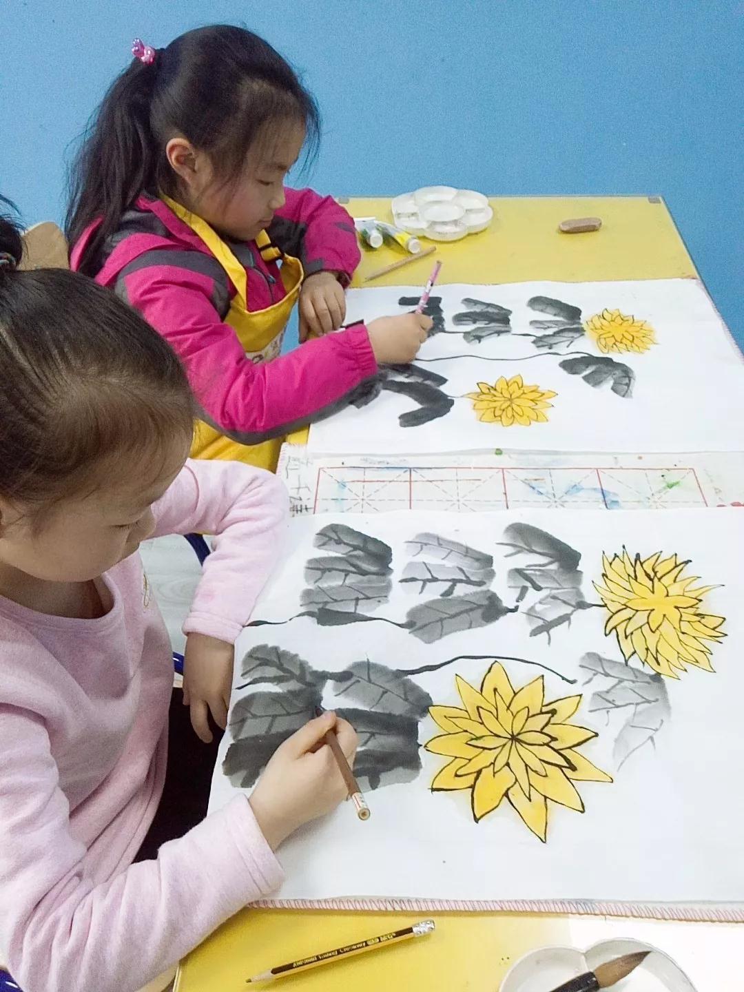“菊花初嫩蕊,幾縷色中香”城陽上豪校區(qū)開啟水墨菊花課程