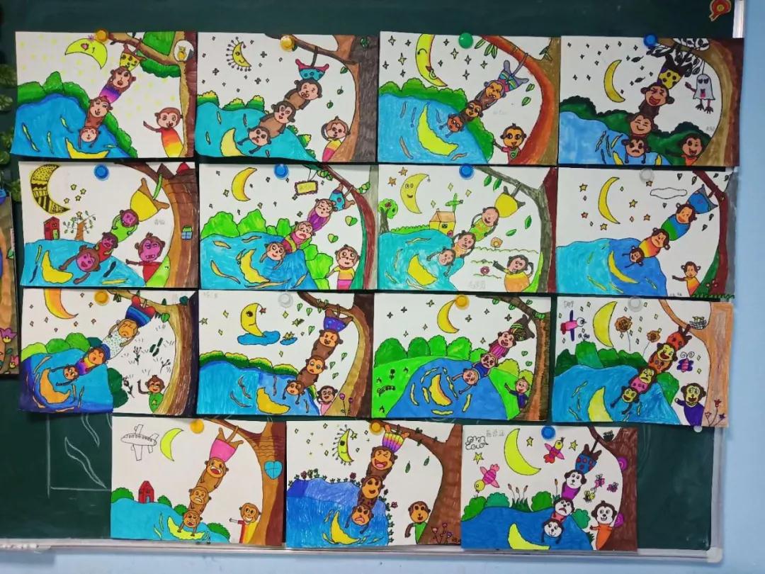 教學過程中,孩子們通過之前所學色彩搭配知識,很輕松的理解了新知識 “紅黃藍”三原色以及常用色的調(diào)色技巧,對薄涂法、厚涂法、點彩法等繪畫技法進行了演示和講解。繪畫過程中詳細講解了小樹的生長特點、背景的畫法、點彩法畫樹葉的方法等知識。