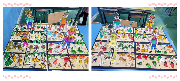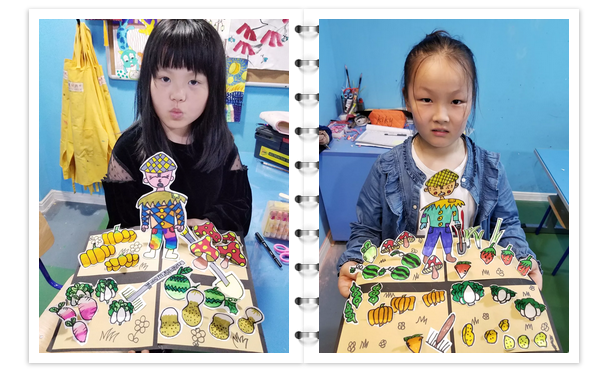 看,同學(xué)們創(chuàng)造出來的豐碩果實(shí),田間還能看到農(nóng)民伯伯幸福的微笑,仿佛在說:小朋友們?cè)絹碓蕉铝?,知道勞?dòng)的不容易,要更加珍惜勞動(dòng)的成果呀。