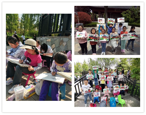 藝術(shù)活動(dòng)是幼兒內(nèi)在的生命活動(dòng),是一種感性的把握世界的方式,藝術(shù)創(chuàng)作的主要來源就是寫生,為了開闊孩子們的視野,讓孩子更加直觀的了解、認(rèn)識(shí)藝術(shù)創(chuàng)作,點(diǎn)金美術(shù)城陽風(fēng)車小鎮(zhèn)教學(xué)基地秉承著“藝術(shù)來源于生活”的理念,于5月3日-4日,組織學(xué)生前往國(guó)學(xué)公園,進(jìn)行了為期2天的戶外寫生活動(dòng)。