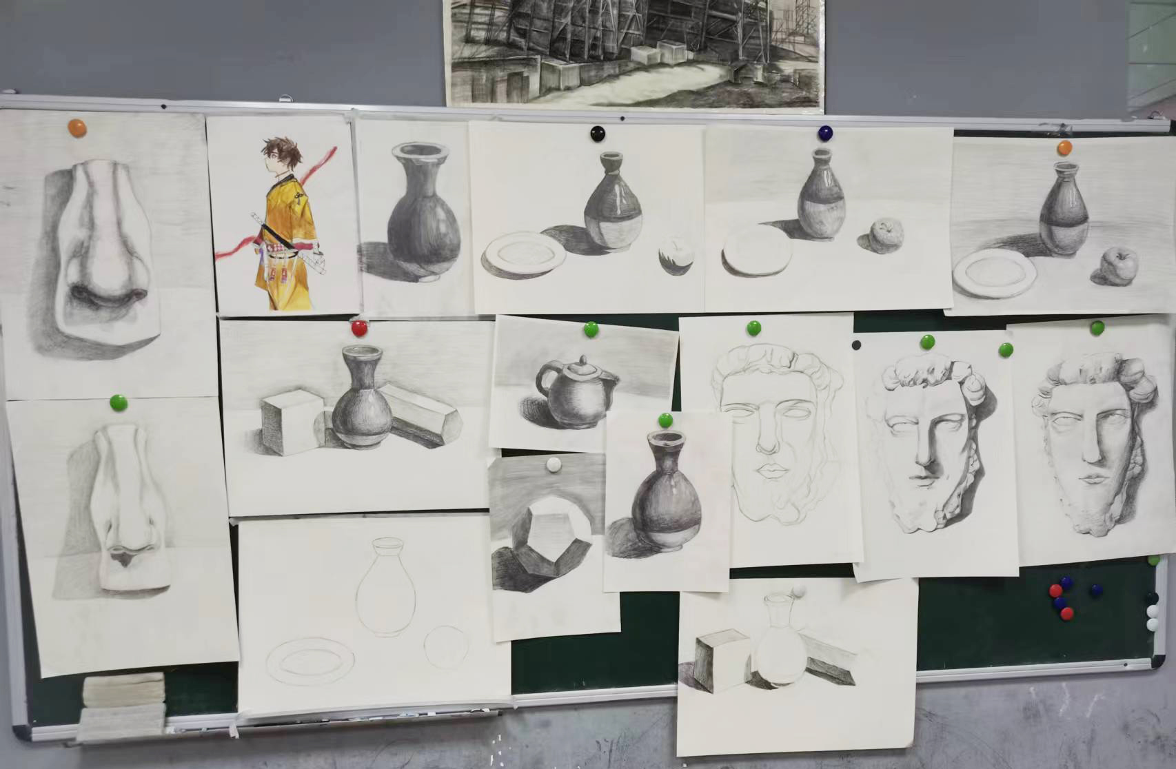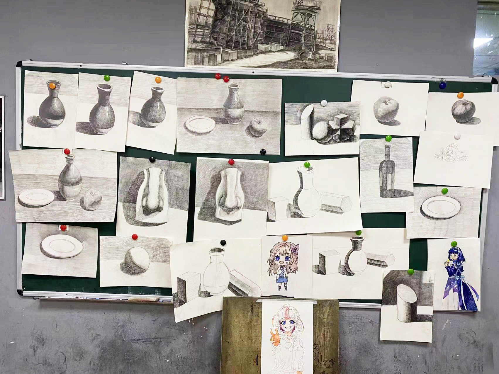 為不斷開(kāi)發(fā)學(xué)員們的繪畫興趣,老師們也絞盡腦汁,采用不同的繪畫形式,調(diào)動(dòng)小學(xué)員們的學(xué)習(xí)積極性,新接觸的水粉靜物以及水粉風(fēng)景課,在學(xué)員的筆下也別有一番風(fēng)景。