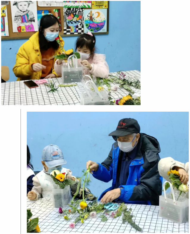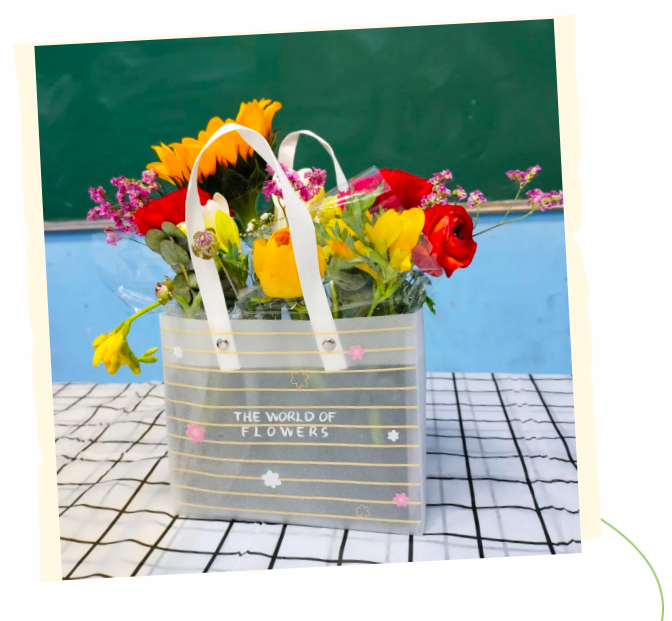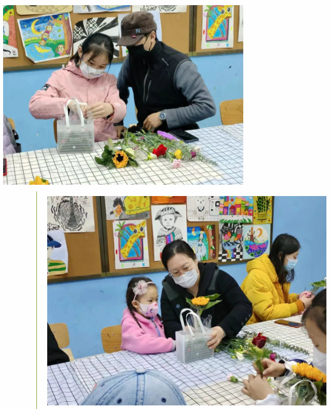 香雪蘭、康乃馨、洋牡丹和非洲菊,加上配花尤加利葉和滿天星,老師們將花園搬進了教室,讓家長和孩子們在指尖感受美妙的春天。