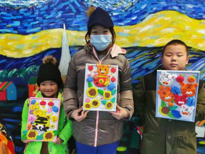 首先來看看兒童畫的“虎年手工相框活動”,使用太空泥捏成自己喜歡的虎年圖案來組成一幅畫面,最后用相框裝裱,參加活動的小學(xué)員們個個興致勃勃,想法千奇百怪,一個個“萌虎”活靈活現(xiàn)。