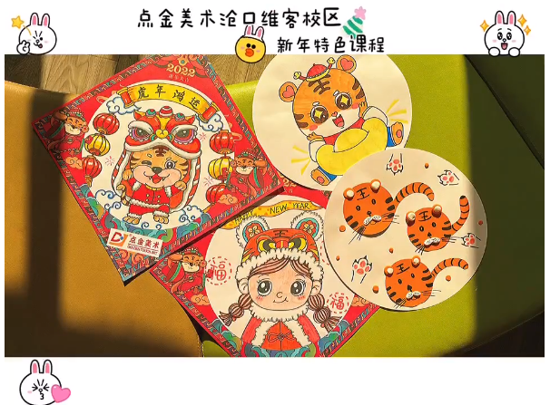 新的一年,點金的小學(xué)員們也在用飽滿的精神狀態(tài)迎接嶄新的繪畫篇章,點金美術(shù)兒童畫和素描舉辦了有關(guān)“虎年”的新年活動。