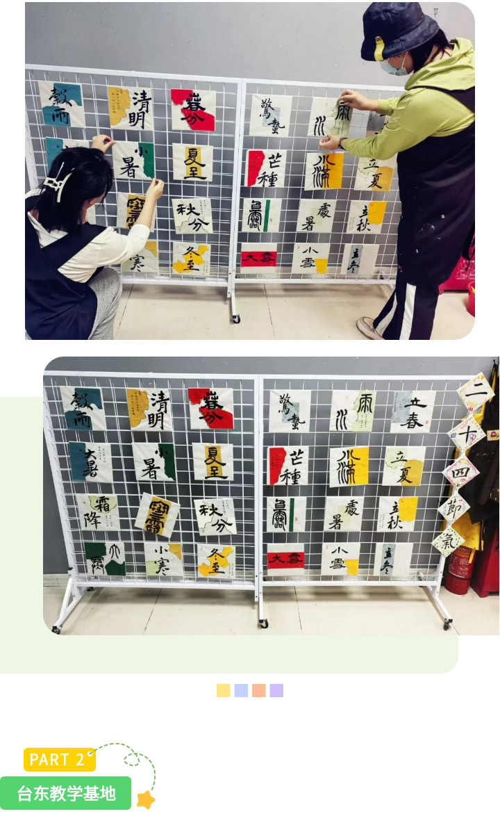 正所謂書(shū)畫(huà)同源,校區(qū)老師們也正用書(shū)畫(huà)結(jié)合的方式,以中國(guó)傳統(tǒng)的二十四個(gè)節(jié)氣為主題,運(yùn)用不同的字體形式,向孩子們展現(xiàn)藝術(shù)的魅力。