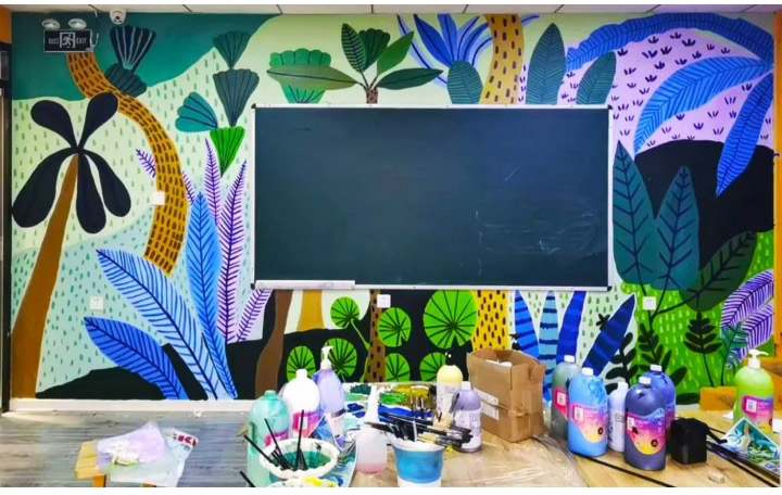 創(chuàng)意墻繪是校區(qū)專(zhuān)屬的一個(gè)特色和標(biāo)志,一個(gè)色彩鮮艷、生動(dòng)有趣的創(chuàng)意墻繪不僅可以為校區(qū)增添一份親和力和活力,也能夠傳遞積極向上的美育文化。
