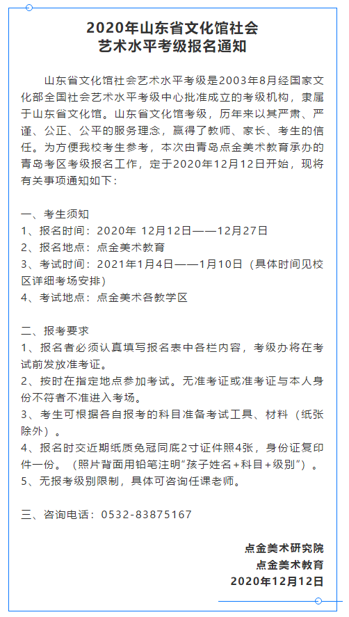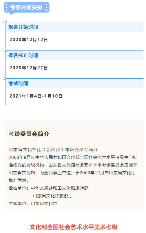【考級通知】關(guān)于山東省文化館社會(huì)藝術(shù)水平考級、文化部全國社會(huì)藝術(shù)水平美術(shù)考級的報(bào)名通知