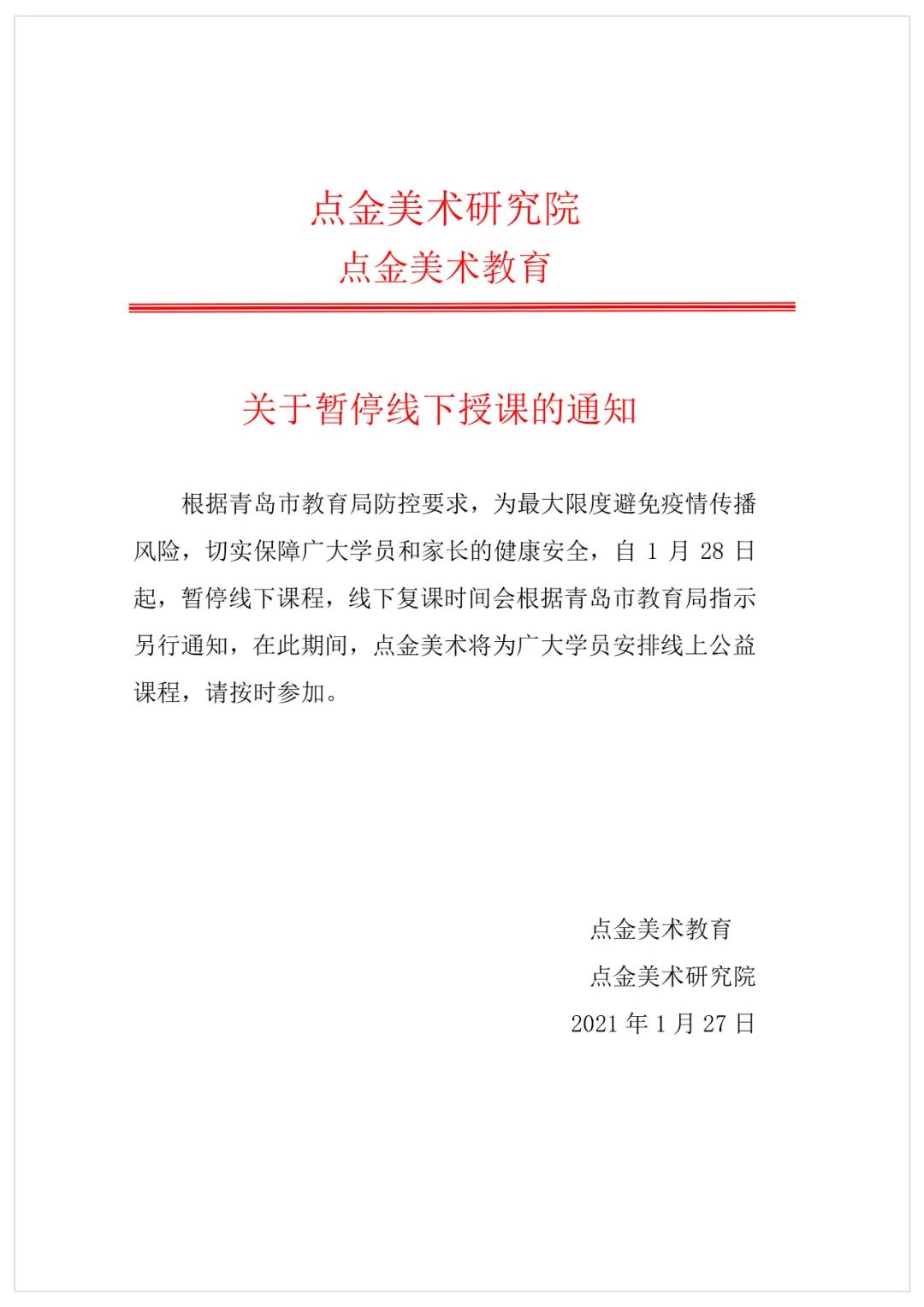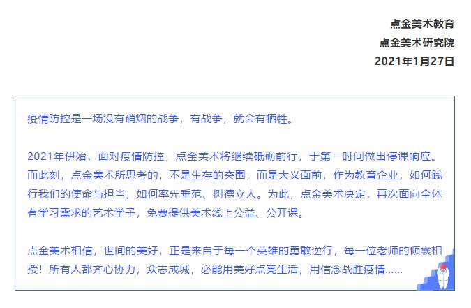 重要通知丨關(guān)于點(diǎn)金美術(shù)線下停課及線上免費(fèi)公益課即將開課的通知