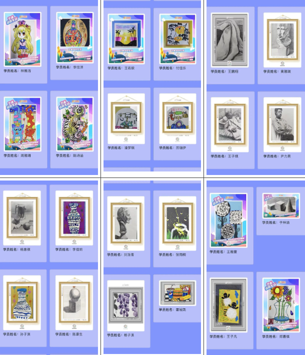 徜徉在畫展中,海量的作品,不管是回味自己的作品還是欣賞其他伙伴的作品,都能夠讓學員們感受沉浸式的藝術教育。