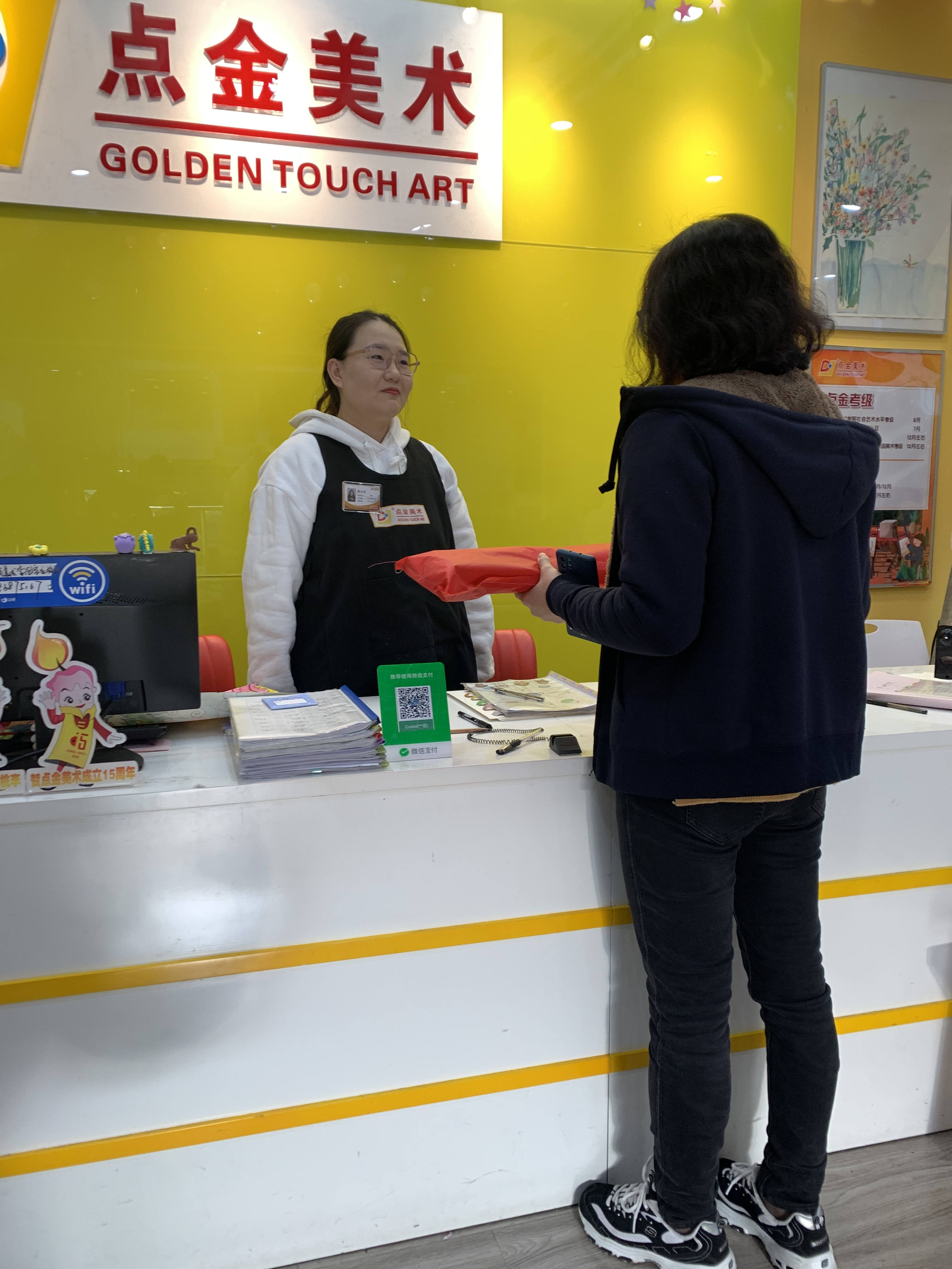 張靖宜、張家淇姐弟兩個(gè)都是點(diǎn)金美術(shù)的學(xué)員,都在陳小佳老師班上學(xué)習(xí)。媽媽說“弟弟的年齡比較小,性格上比較調(diào)皮,之前我們也在其他地方試聽過,效果也不太好。但是到了小佳老師這邊,通過小佳老師的不斷鼓勵,孩子變得特別聽話,在美術(shù)方面展現(xiàn)出了特別的天賦和熱愛,給了我們的很大的驚喜?!笔前?,孩子的成長和進(jìn)步時(shí)刻牽動著家長的心,也許這一面小小的錦旗,更多的是來自于母親對孩子進(jìn)步的喜悅。