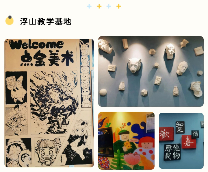 藝術點亮生活,讓孩子們全面發(fā)展素質美育,從視覺、觸覺,去感知藝術的魅力,點金美術從來不是說說而已。小學員們,快到你所在的校區(qū)去觀賞新的環(huán)境吧,老師們期待你的到來~