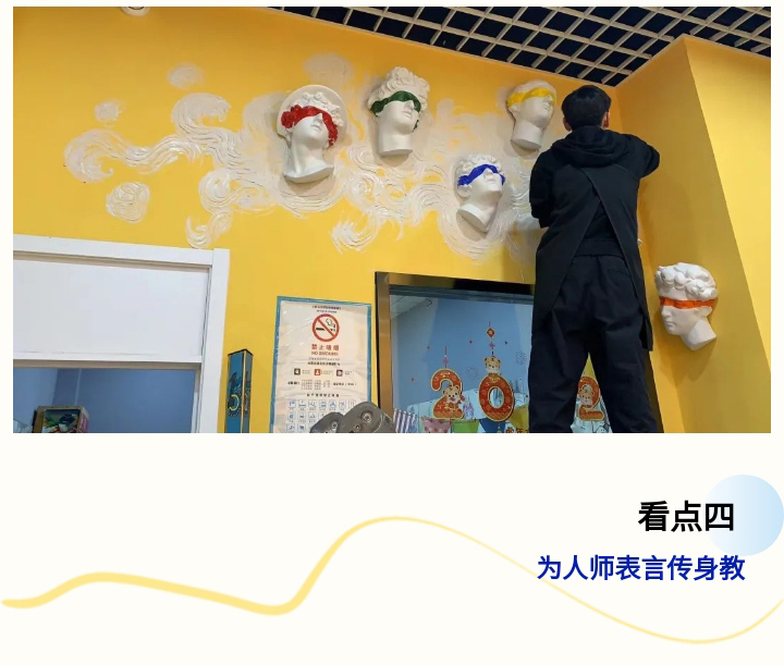 優(yōu)秀的校區(qū)環(huán)創(chuàng)內容自然不能一揮而就和一成不變,定期更新校區(qū)環(huán)創(chuàng),給學員們不同的藝術感官體驗,在這種良好的氛圍中激發(fā)學員們的創(chuàng)作欲,并提高他們的審美能力,用環(huán)境育人。